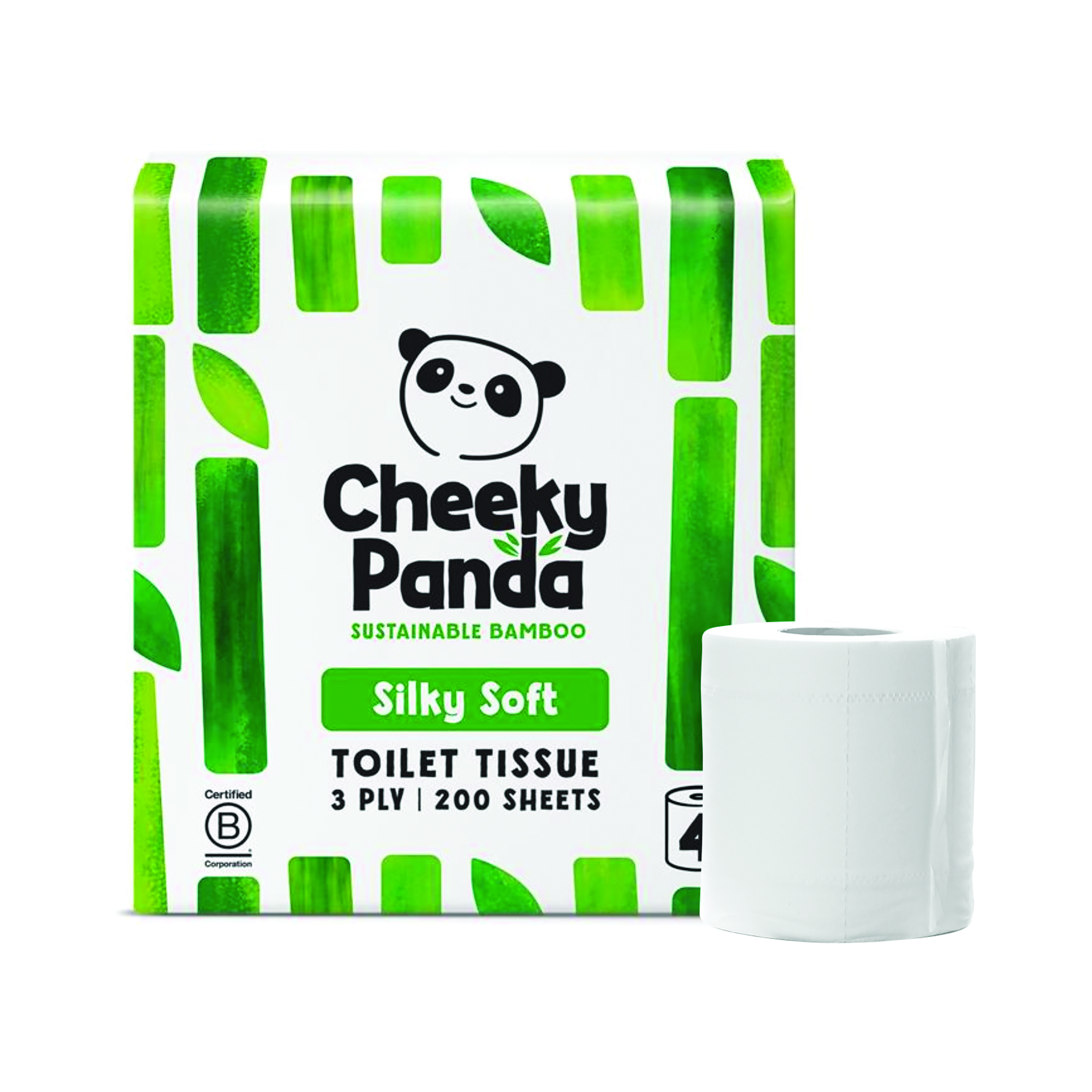 Cheeky Panda Silky Soft toilet paper is made from sustainable bamboo, these soft and strong toilet rolls are kind to the skin, super soft even on sensitive skin. Entirely plastic free. Each pack contains 4 rolls, each roll contains 200 sheets of 3-ply toilet tissue.
