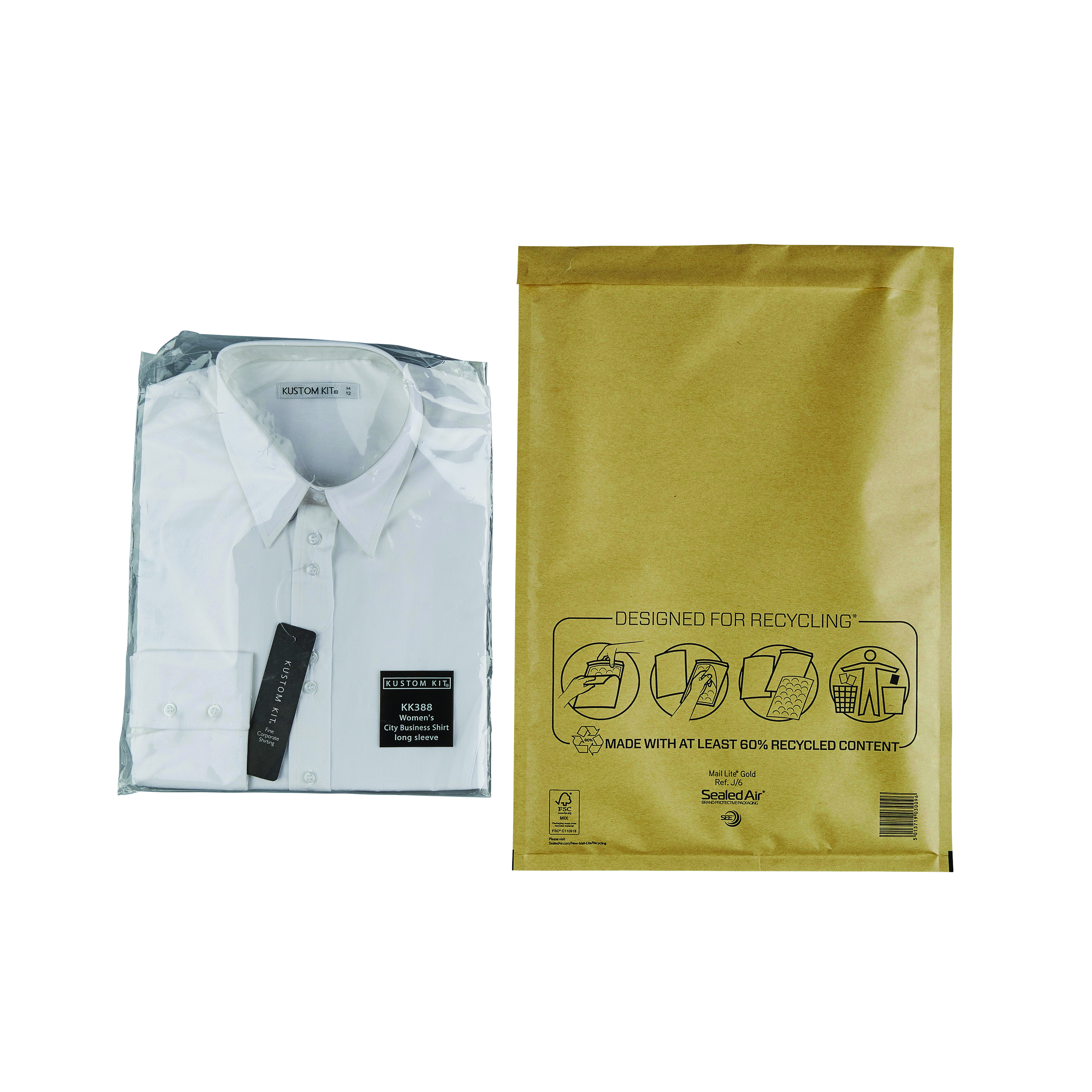 These lightweight Sealed Air postal bags feature an AirCap bubble lining (made from 60% recycled content) for high performance protection for delicate and fragile items in transit. The mailers also feature a tough non-coated Kraft outer (which can be recycled) and strong self-seal closure. These size J/6 bags measure 300 x 440mm and are supplied in a pack of 50 in Gold.